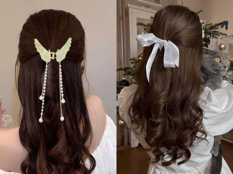 Khi đi dự lễ đám cưới thì những chiếc váy nhẹ nhàng thường được lựa chọn làm trang phục của các cô gái. Chính vì vậy mà phụ kiện đi kèm của tóc để kết hợp với trang phục sẽ giúp bạn trông rất hoàn hảo. Nơ kẹp tóc chính là một món phụ kiện được xem như là “bảo bối” của các cô gái. Món đồ này vô cùng HOT khiến bạn cứ trưng diện là tăng phần dịu dàng và xinh xắn liền. Một món phụ kiện cho tóc nhỏ thôi nhưng đó lại là điểm nhấn giúp bạn cuốn hút hơn đó. Sắm ngay cho mình những chiếc kẹp nơ để diện trong những dịp cần thiết nha.